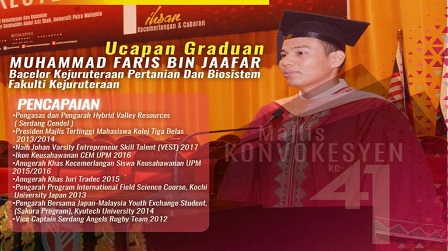 Muhamad Faris Jaafar, menyampaikan Ucapan Graduan Sidang Tujuh, Majlis Konvokesyen UPM Ke-41