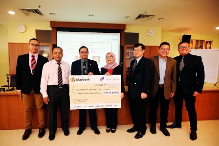 The handover of the research grant check replica was presented by the Managing Director of BETSOL Sdn. Bhd., Jamiah Zainal Abidin to Prof. Dr. Goh Yong Meng who represented the Dean of the Faculty of Veterinary Medicine. The ceremony was witnessed by the Director of Research Management Centre (RMC), UPM, Prof. Dr. Mohammad Hamiruce Marhaban.
