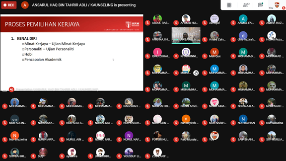 The programme was conducted by the counselling officer from UPM Counseling Division, Ansarul Haq Tahrir Adli, in collaboration with the Alumni and Career Secretariat, K17 Representative Council led by Teoh Jiu Yang; UPM Counseling Division, INTESABER and UPM Student Affairs Division.