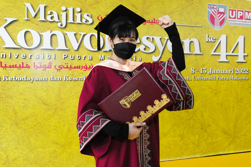 Cheah, 30, received her Master of Science degree in Design Innovation at the 44th Universiti Putra Malaysia (UPM) Convocation Ceremony here today.