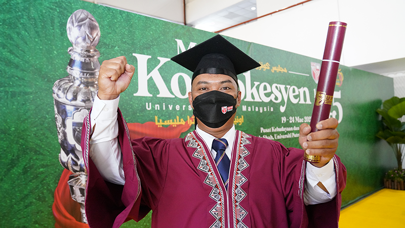 He often served as the security officer for the UPM Convocation Ceremony since 15 years ago and was determined to hold a diploma or degree just like other UPM graduates.