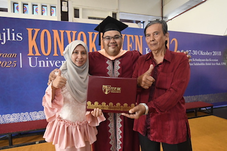 As a result of his efforts and persistence, Zulkifly, 39, received Master of Remote Sensing and Geographical Information Systems, Faculty of Engineering at the 42nd Convocation Ceremony of Universiti Putra Malaysia (UPM) here.