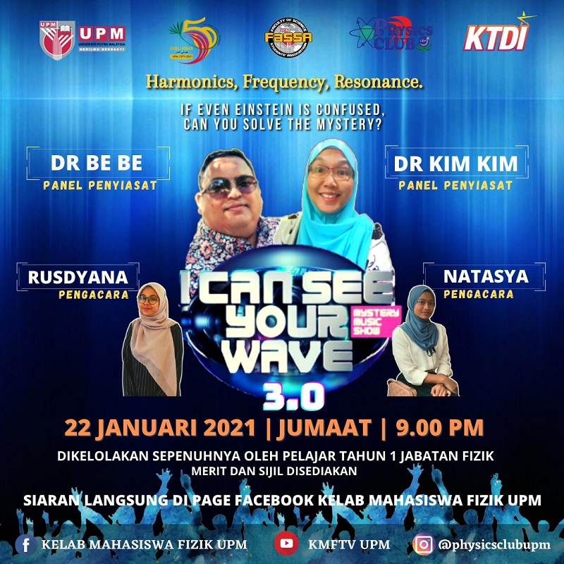 SERDANG, Jan 22 – A total of 17 first-year students from the Department of Physics, Faculty of Science, Universiti Putra Malaysia (UPM) in collaboration with the Physics Student Club (KMF) has held the “I Can See Your Wave 3.0” programme online.