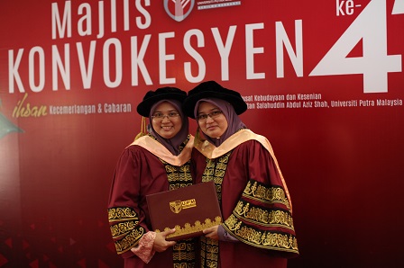 SERDANG, 5 Nov - Twin sisters, Nurhaiza Nordin and Nurnaddia shared the joy when each of them was conferred with a PhD in economics at Universiti Putra Malaysia’s 41st Convocation Ceremony, today.