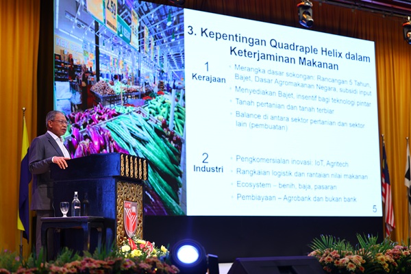 Beliau menekankan perlunya kerangka kerjasama berasaskan model Quadruple Helix melibatkan kerajaan, industri, institusi akademik dan komuniti sebagai asas kepada pengukuhan dasar keterjaminan makanan negara.