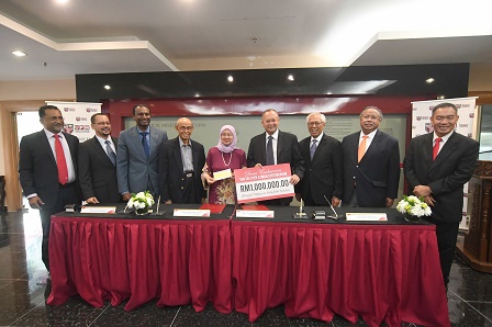 Tan Sri Azman handed over a one million ringgit endowment fund to UPM Vice-Chancellor, Prof. Datin Paduka Dato' Dr. Aini Ideris, and it was witnessed by UPM Pro Chancellor, Tan Sri Dato’ Setia Nayan Ariffin; UPM Board of Directors Chairman, Prof. Emeritus Tan Sri Dr. Anuwar Ali; UPM Deputy Vice-Chancellor for Industry and Community Relations, Prof. Dato' Dr. -Ing. Ir. Renuganth Varatharajoo; Weststar Group Financial Advisor, Datuk Syed Izuan Syed Kamarulbahrin and Dean of UPM Engineering Faculty, Prof. Dato’ Ir. Dr. Mohd Saleh Jaafar. – UPM