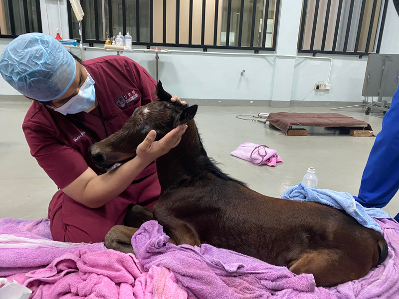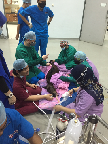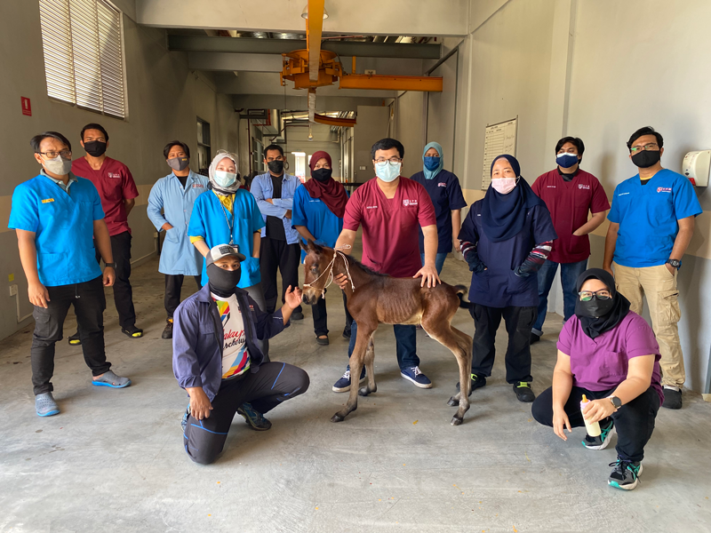 The surgery involved three teams, namely the anaesthesia team (led by Dr. Noorashimah Roslim and assisted by Dr. Wan Sukri and Dr. Benedict Ong), the surgical team (led by Dr. Nurul Hayah and Dr. Syahirah) and the foal resuscitation team (led by Dr. Mark Hiew and assisted by Dr. Wan Sukri and Dr. Luqman Samad).