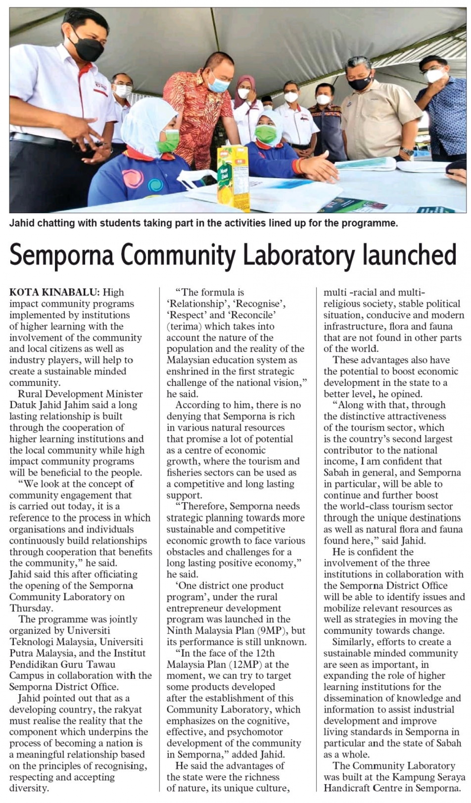 SEMPORNA COMMUNITY LABORATORY LAUNCHED | Universiti Putra Malaysia